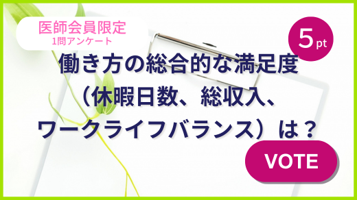 「働き方の総合的な満足度(休暇日数、総収入、ワークライフバランス)は?」を公開しました。 - 2025年11月20日【Medure会員医師へのアンケート結果】